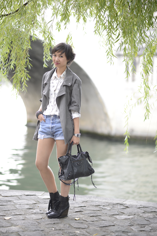 La tenue par-faite pour la météo parisienne en ce moment. Et comme la veste couvre les fesses même avec un short court ça passe ! Top ! x)