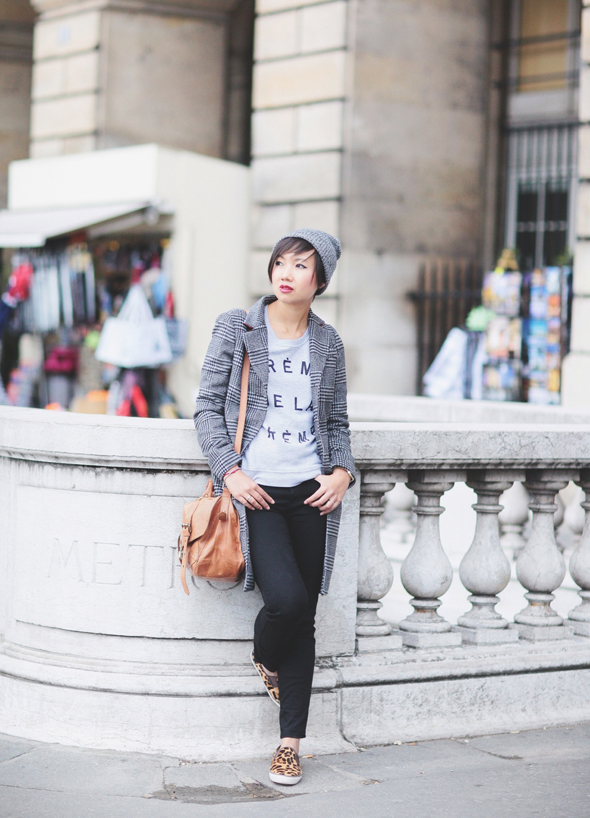 J’adore le mélange d’imprimés léopard et à carreaux, ça rend vraiment bien!