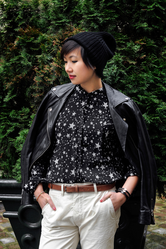 Très sympa cette tenue 😉 J’adore la chemise avec les étoiles, finalement un classique à mon sens. Et t’inquiète, de ce que j’ai vu pour l’instant des défilés pour l’hiver prochain, le léopard est loin d’être mort, tout comme les carreaux et les rayures. On est sauvé 🙂