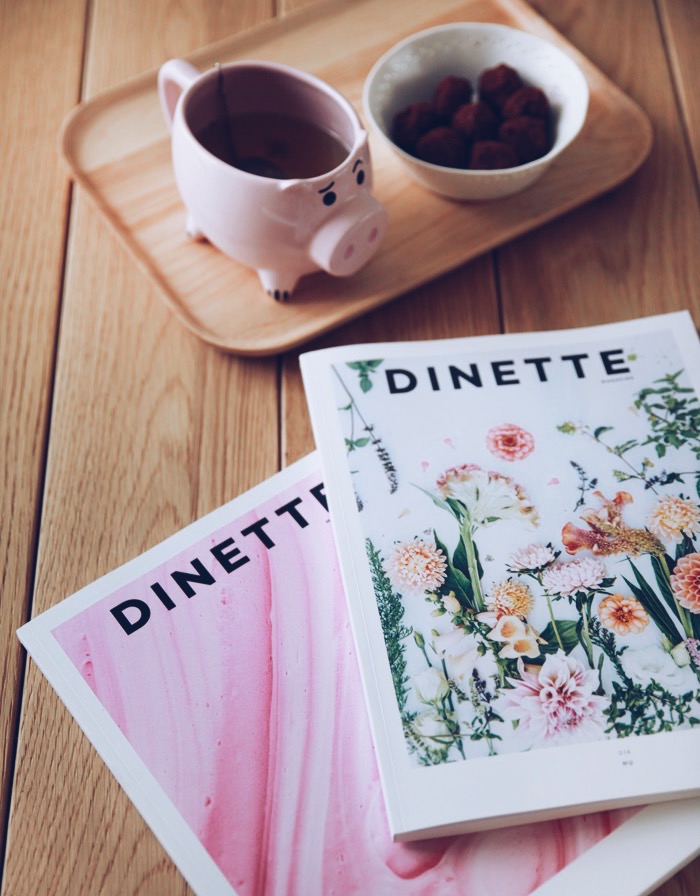 Dînette renferme des recettes joliment mises en scène, avec une mise en page épurée et poétique comme je les aime. L’ouvrage est tellement beau que je pense conserver tous les numéros à la manière de jolis livres de cuisine.